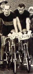 Frits Ramakers bewees zijn klasse door bij de amateurs en bij de profs uitstekende resultaten te behalen. links staat Hay Schoenmakers uit Blerick en naast Frits rechts de Eindhovenaar Gerrit Visser en ???